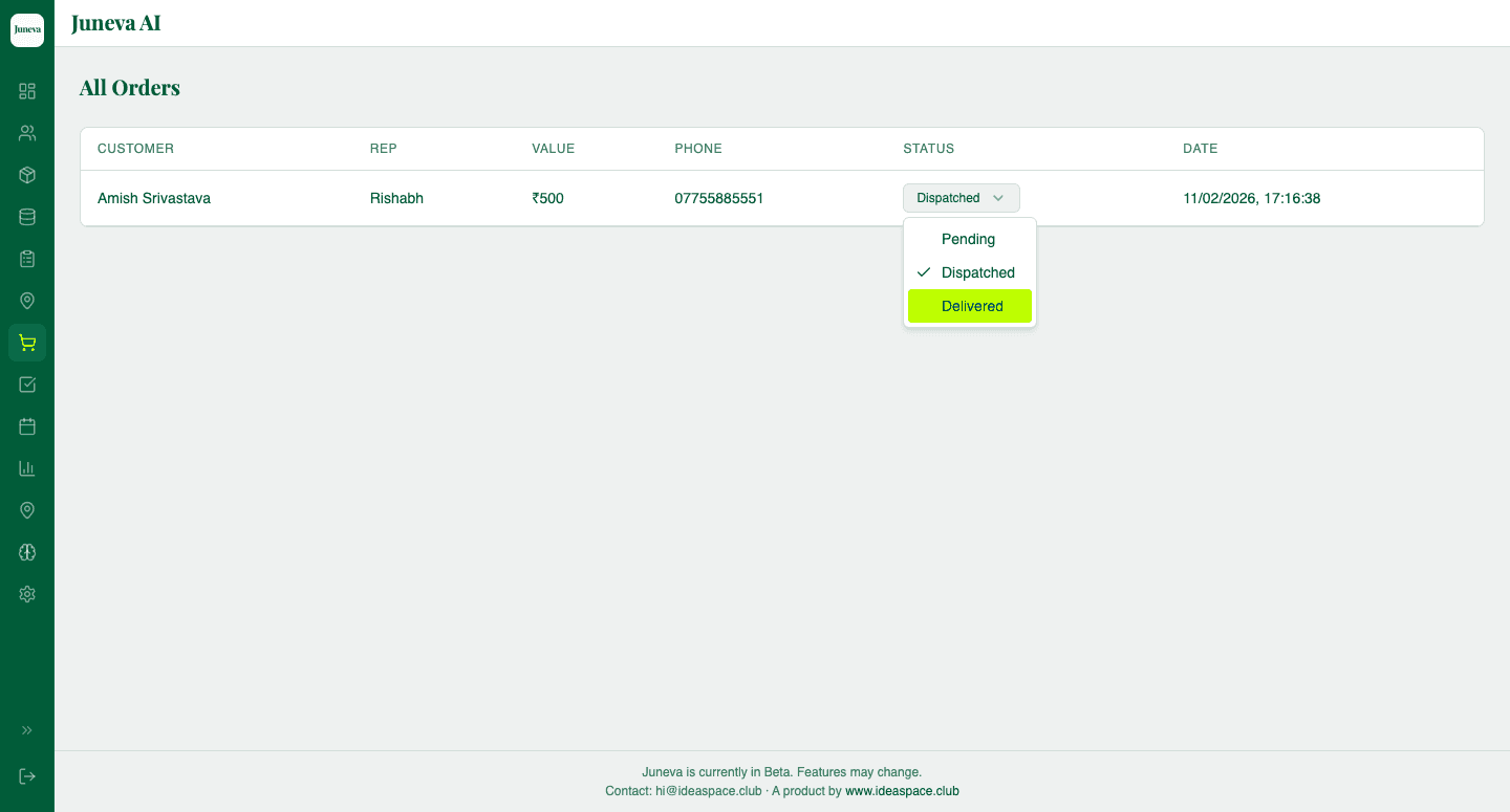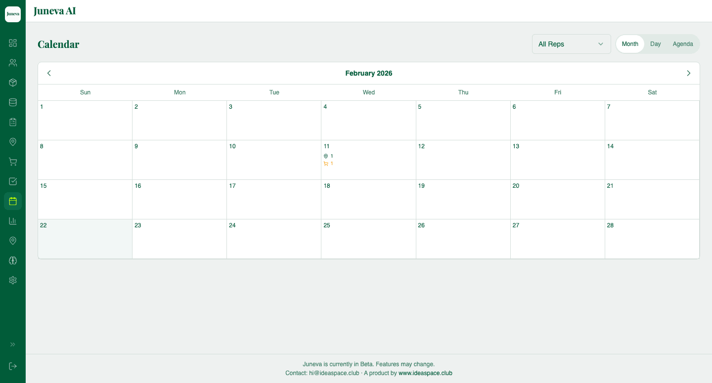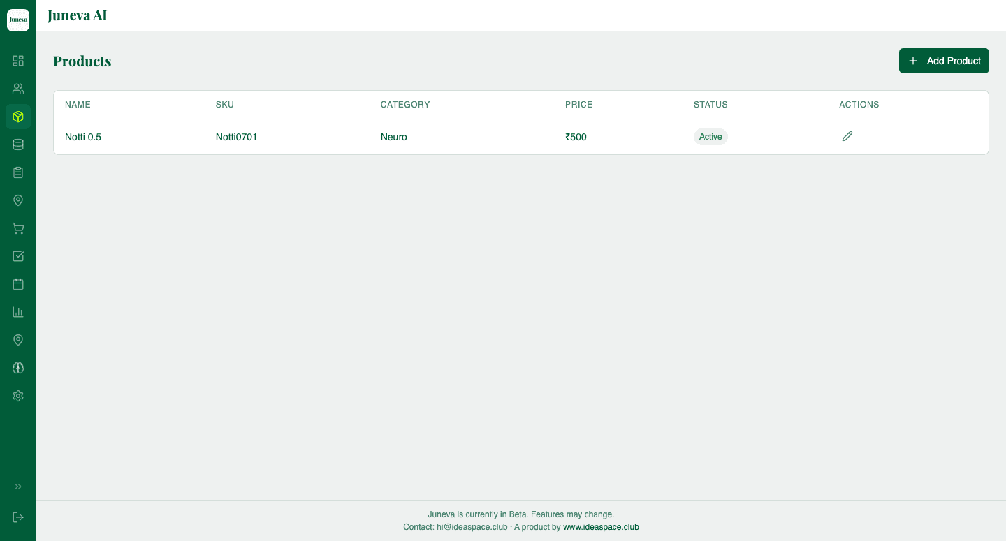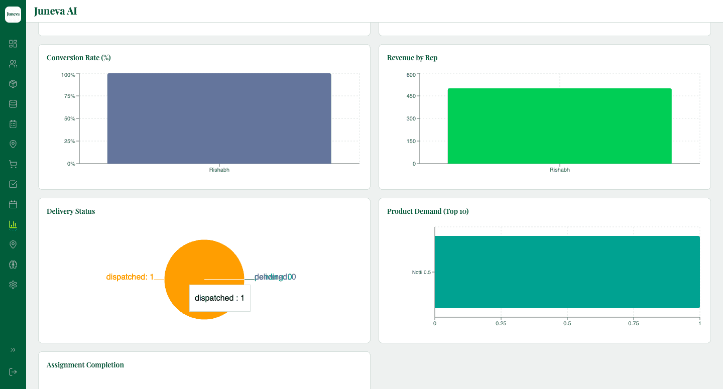 7. AI Intelligence Layer (Rolling Out) Juneva is evolving from a tracking tool into a field intelligence platform. The AI layer focuses on smart visit planning, performance pattern detection, rep productivity insights, auto-generated summaries, and anomaly detection — transforming raw field data into managerial intelligence.