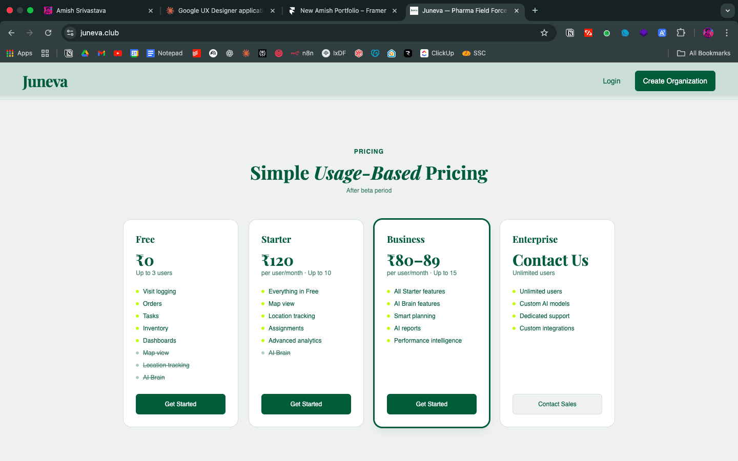Every module in Juneva exists because it reflects a real use case observed in pharma field teams. The design removed friction from workflows that were already happening — it didn't impose new ones.