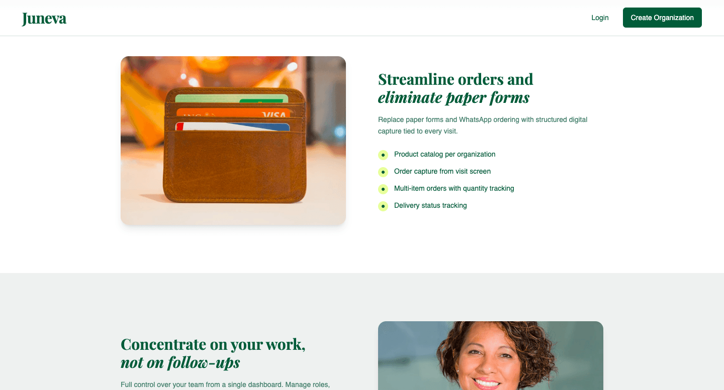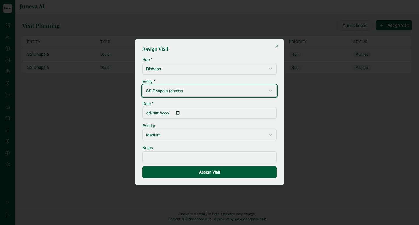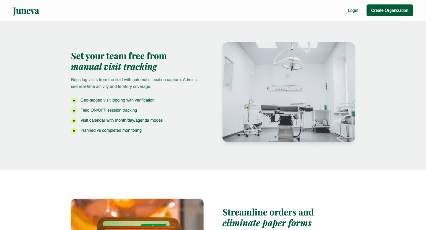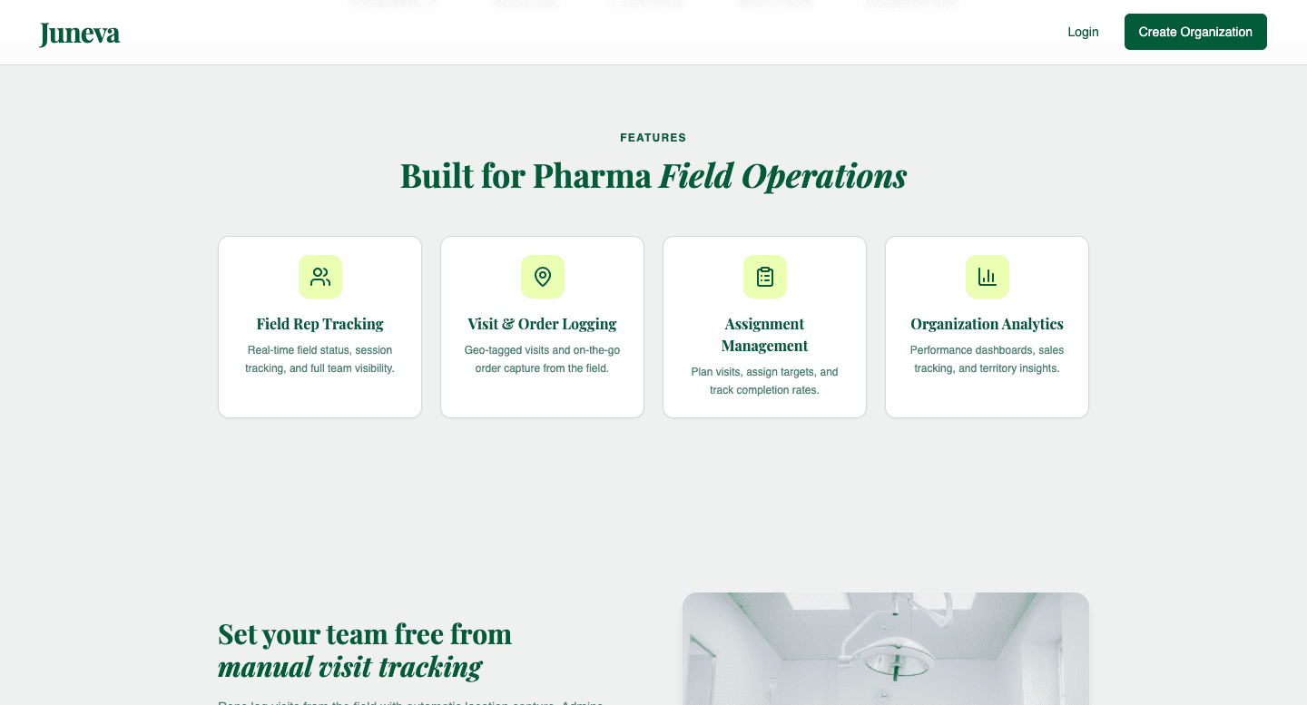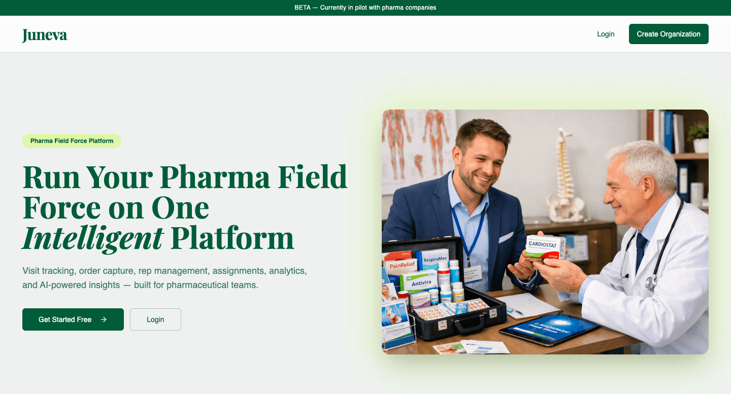 Instead of building a generic CRM and adding pharma labels, Juneva was structured around real field execution flows: